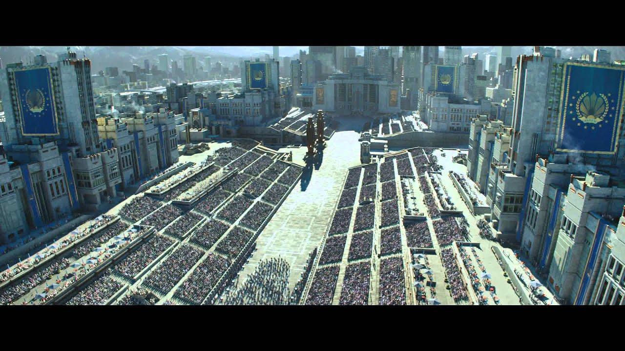 Теперь непосредственно о фильме…Наверно, сразу следует оговориться, что именно к «Голодным играм» отношение у меня особое. Для меня это произведение в целом (что фильм, что книга) не о том, как девочка выбирала из двух кавалеров любовь всей своей жизни, и не о том, как «супервумен» затеяла революцию, а о том, как человеку (неважно, какого пола и возраста) не повезло попасть «под колёса истории». В Китнисс Эвердин нет ничего такого исключительного. Она не обладает особыми способностями, как Белла из «Сумерек», не является эксклюзивным универсалом подобно дивергентной Трис, не может похвастаться «мега-мозгом» с лекарство от очередной «зомби-болезни», как лабиринтный Томас, да даже никакого судьбоносного шрама у неё не имеется. Это действительно «лицо, выхваченное из толпы». Китнисс обычная, и во всех смыслах «не самая» - не самая сильная, не самая умная, не самая красивая, не самая смелая и т.д., и т.п. Просто на очередной жатве вытянули имя её сестры. И всё. С этого самого момента она практически больше ничем не управляет. Это фигура на шахматной доске, возможно, не пешка, чуть посолиднее, но и совершенно точно не игрок. Её постоянно куда-то волокут, подталкивают, заставляют чего-то изображать и используют в своих целях. Сначала Сноу, потом Койн. Разные цели, но абсолютно одинаковые методы.