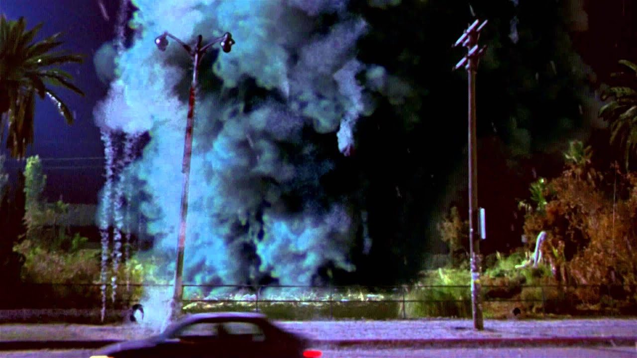 - Почти все сцены на бульваре Уилшер были сняты с помощью декораций в большом павильоне, которые представляли собой точную копию этой улицы чуть меньшего размера и с домами без крыш, которые были «достроены» с помощью компьютерной графики. Взрывы же были настоящие и выполнялись с помощью газа пропана.